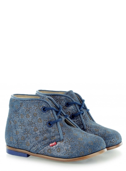 Niebieskie buciki Emel wykonane zostały z miękkiej skóry zamszowej w niebieskim kolorze. Ozdobione brokatem i subtelnymi wzorkami prezentują się niezwykle oryginalnie pomimo klasycznej linii. Stworzone z myślą o dzieciach buty dbają o potrzeby rosnącej stopy.