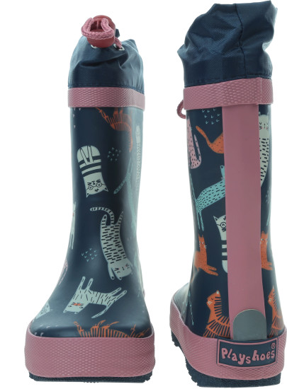 Wysokie kalosze dziecięce marki Playshoes zostały wykonane z elastycznego naturalnego kauczuku. Print w kotki zachwyci niejednego małego odkrywcę. Nic tylko wsunąć nóżki i wyruszyć na podbój świata. Kalosze łatwo się zakłada, są bardzo miękkie i elastyczne, nie krępują ruchów dziecka. Dodatkowo posiadają sznurek zabezpieczający dostanie się wody do środka.