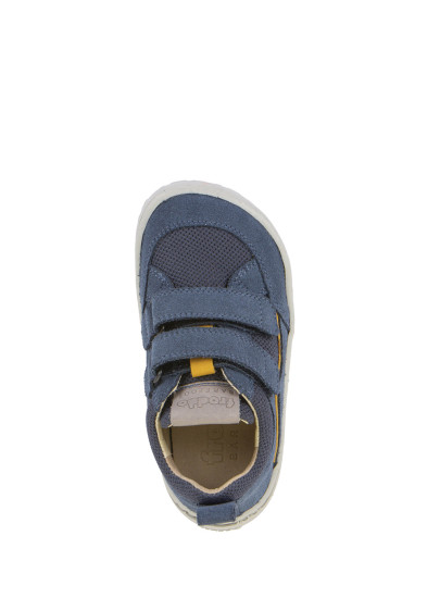 Cholewka została wykonana z połączenia naturalnej skóry zamszowej oraz oddychającej siateczki, dzięki czemu buty są lekkie i dobrze wentylowane. Dwa praktyczne rzepy umożliwiają szybkie zakładanie oraz łatwe dopasowanie do stopy dziecka.