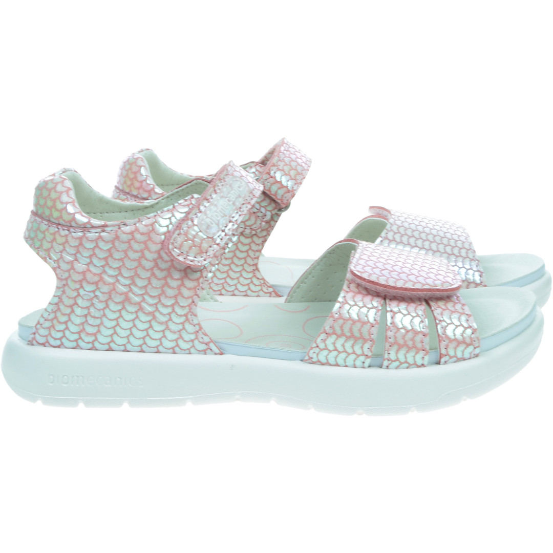 Stylowe i niezwykle urocze sandałki marki Biomecanics, które zachwycają wyjątkowym efektem syrenki . Delikatnie mieniąca się cholewka pięknie odbija światło słoneczne, tworząc bajkowy, połyskujący efekt – idealny dla małych miłośniczek błyszczących stylizacji.