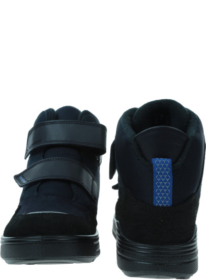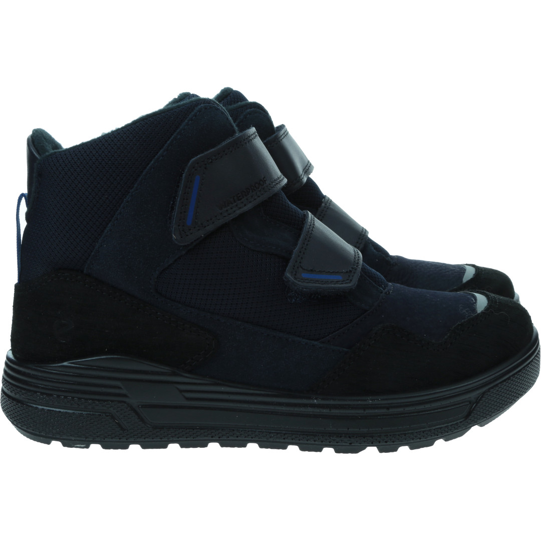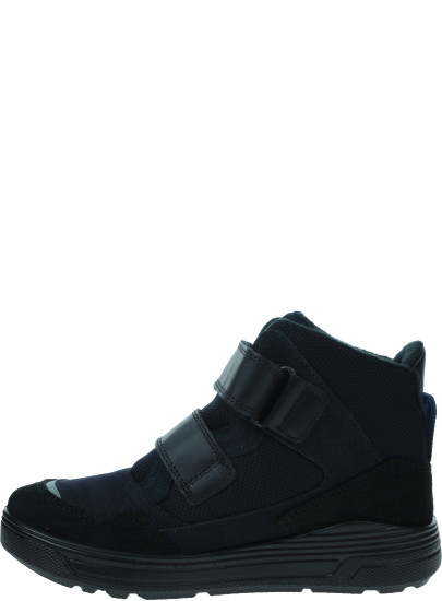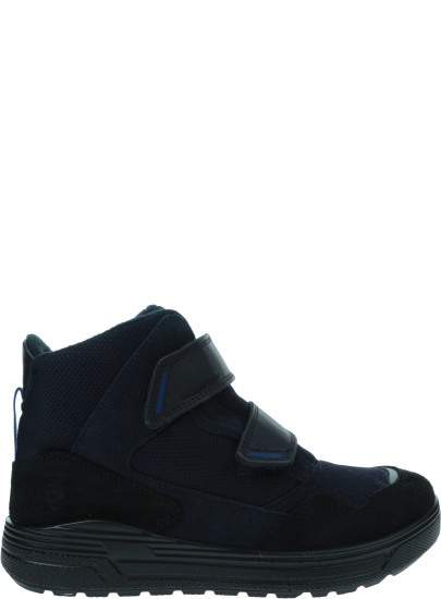 Wykonane z mieszanki wysokiej jakości skóry ECCO i materiałów tekstylnych. Błyskawiczne zapięcie na dwa regulowane paski. Wolna od związków perfluoroalkilowych wodoszczelna membrana pomaga zapewnić stopom suchość przez cały dzień. Ciepła wyściółka pomaga utrzymać rosnące stopy w odpowiedniej temperaturze.