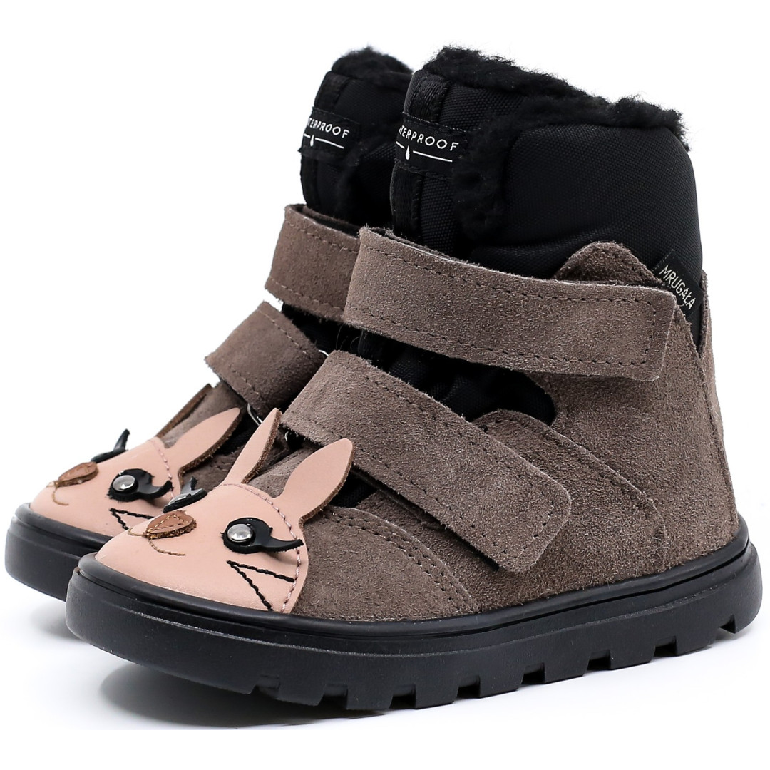 Fakty dotyczące produktu: cholewka wykonana z wysokiej jakości skóry zamszowej, front udekorowany wizerunkiem uroczego zwierzaka, wyściółka wykonana z grubego, ciepłego kożuszka z membraną „te-por” zapewnia wodoodporność i oddychalność oraz miękkość, wyjmowana, ocieplana wkładka, antypoślizgowa i elastyczna podeszwa, wykonana z termo-kauczuku, usztywniana pięta stabilizuje stopę w odpowiednim ułożeniu, zapewniając jej tym samym prawidłowy rozwój oraz bezpieczeństwo, szeroki usztywniony nosek chroni palce przed urazami jednocześnie nie ściskając ich, buty zapinane na rzep, doskonale dopasowują się do stopy dziecka, język zszyty z cholewką zapobiega przedostawaniu się śniegu i wody do wnętrza buta, a jego specjalna konstrukcja pozwala na swobodne wsuwanie buta, produkt polski.