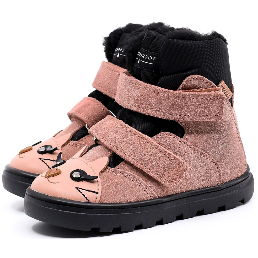 Fakty dotyczące produktu: cholewka wykonana z wysokiej jakości skóry zamszowej, front udekorowany wizerunkiem uroczego zwierzaka, wyściółka wykonana z grubego, ciepłego kożuszka z membraną „te-por” zapewnia wodoodporność i oddychalność oraz miękkość, wyjmowana, ocieplana wkładka, antypoślizgowa i elastyczna podeszwa, wykonana z termo-kauczuku, usztywniana pięta stabilizuje stopę w odpowiednim ułożeniu, zapewniając jej tym samym prawidłowy rozwój oraz bezpieczeństwo, szeroki usztywniony nosek chroni palce przed urazami jednocześnie nie ściskając ich, buty zapinane na rzep, doskonale dopasowują się do stopy dziecka, język zszyty z cholewką zapobiega przedostawaniu się śniegu i wody do wnętrza buta, a jego specjalna konstrukcja pozwala na swobodne wsuwanie buta, produkt polski.