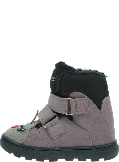 Fakty dotyczące produktu: cholewka wykonana z wysokiej jakości skóry zamszowej, front udekorowany wizerunkiem uroczego zwierzaka, wyściółka wykonana z grubego, ciepłego kożuszka z membraną „te-por” zapewnia wodoodporność i oddychalność oraz miękkość, wyjmowana, ocieplana wkładka, antypoślizgowa i elastyczna podeszwa, wykonana z termo-kauczuku, usztywniana pięta stabilizuje stopę w odpowiednim ułożeniu, zapewniając jej tym samym prawidłowy rozwój oraz bezpieczeństwo, szeroki usztywniony nosek chroni palce przed urazami jednocześnie nie ściskając ich, buty zapinane na rzep, doskonale dopasowują się do stopy dziecka, język zszyty z cholewką zapobiega przedostawaniu się śniegu i wody do wnętrza buta, a jego specjalna konstrukcja pozwala na swobodne wsuwanie buta, produkt polski.