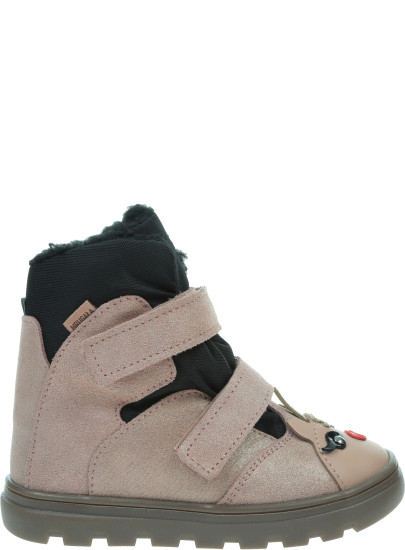 Fakty dotyczące produktu: cholewka wykonana z wysokiej jakości skóry zamszowej, front udekorowany wizerunkiem uroczego zwierzaka, wyściółka wykonana z grubego, ciepłego kożuszka z membraną „te-por” zapewnia wodoodporność i oddychalność oraz miękkość,  wyjmowana, ocieplana wkładka, antypoślizgowa i elastyczna podeszwa, wykonana z termo-kauczuku, usztywniana pięta stabilizuje stopę w odpowiednim ułożeniu, zapewniając jej tym samym prawidłowy rozwój oraz bezpieczeństwo, szeroki usztywniony nosek chroni palce przed urazami jednocześnie nie ściskając ich, buty zapinane na rzep, doskonale dopasowują się do stopy dziecka, język zszyty z cholewką zapobiega przedostawaniu się śniegu i wody do wnętrza buta, a jego specjalna konstrukcja pozwala na swobodne wsuwanie buta, produkt polski.