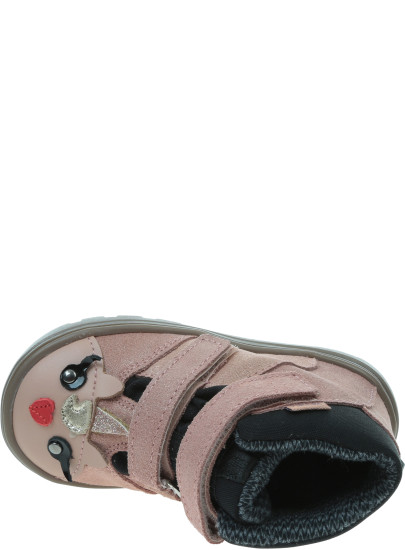 Fakty dotyczące produktu: cholewka wykonana z wysokiej jakości skóry zamszowej, front udekorowany wizerunkiem uroczego zwierzaka, wyściółka ocieplona polarem zapewnia dodatkową miękkość, jest delikatna, lekka i ciepła, wkładka filcowa, antypoślizgowa i elastyczna podeszwa, usztywniana pięta stabilizuje stopę w odpowiednim ułożeniu, zapewniając jej tym samym prawidłowy rozwój oraz bezpieczeństwo, szeroki usztywniony nosek chroni palce przed urazami jednocześnie nie ściskając ich, buty zapinane na rzep, doskonale dopasowują się do stopy dziecka, produkt polski.