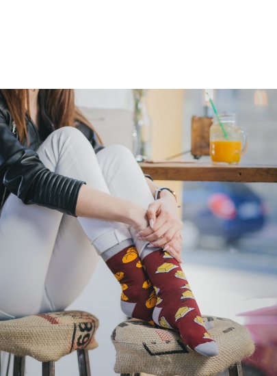 Skarpetki są asymetryczne (mismatched), czyli w parze jedna jest inna niż druga, ale połączone są wspólnym motywem i kolorami. Spróbuj, a już nigdy nie założysz innych!