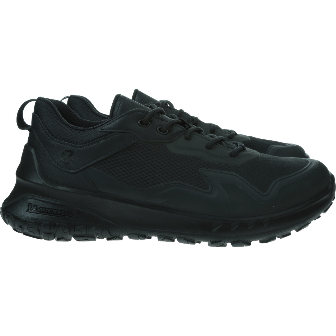 Cholewka wykonana z oddychającego, odpornego na rozdarcia materiału, w połączeniu z poliestrem w 100% z recyklingu. Miękka, ultralekka podeszwa środkowa PHORENE™ oferuje sprężystość i zwrot energii przy każdym kroku. Amortyzacja i elastyczność dzięki technologii ECCO FLUIDFORM™ Direct Comfort poprawia komfort chodzenia. Ogromnym atutem jest innowacyjna i charakterystyczna podeszwa z gumą Michelin, wielokierunkowe rowki oraz dwie charakterystyczne strefy dbają o przyczepność, wytrzymałość i wsparcie.