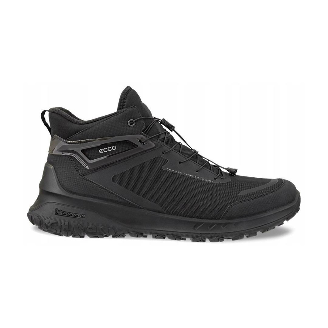 ECCO ULT-TRN to sportowa i skandynawska odsłona klasycznych butów trekkingowych. Mają one atletyczny, nowoczesny design i sznurowadła ułatwiające zakładanie i zdejmowanie. Te idealne na mroźne zimowe dni buty za kostkę są wyściełane izolacją PrimaLoft® Bio™ o gramaturze 200 g, a wodoszczelna membrana wolna od związków perfluoroalkilowych utrzymuje stopy w cieple i suchości. Nowoczesny, lżejszy wygląd wykonany z wysokiej jakości tekstyliów. Biodegradowalna izolacja PrimaLoft® Bio™ o gramaturze 200 g jest w 100% wykonana z materiałów pochodzących z recyklingu i utrzymuje stopy w cieple nawet w niższych temperaturach. Wodoszczelna membrana wolna od związków perfluoroalkilowych zapewnia suchość stóp. Szkielet wzmacnia stabilność, która jest potrzebna w czasie pieszych wędrówek. Miękka, superlekka podeszwa środkowa PHORENE™ oferuje lepsze odbicie i efektywność energetyczną. Innowacyjna i charakterystyczna podeszwa wykonana z gumy Michelin, głębokie, wielokierunkowe rowki oraz dwie charakterystyczne strefy dbają o przyczepność, stabilność i wsparcie.