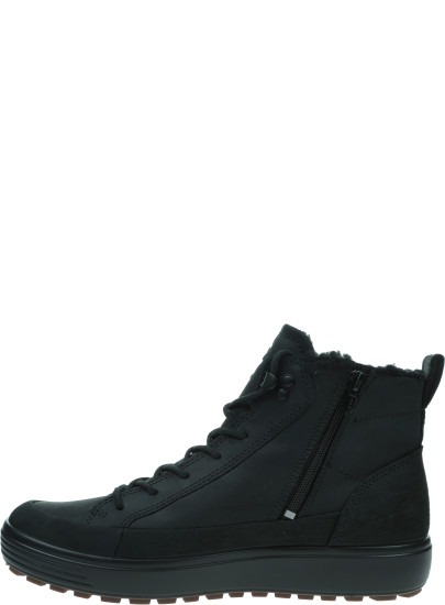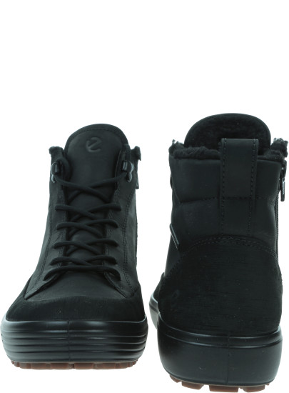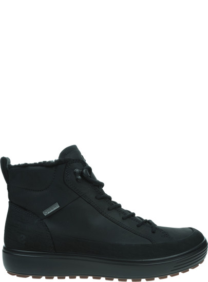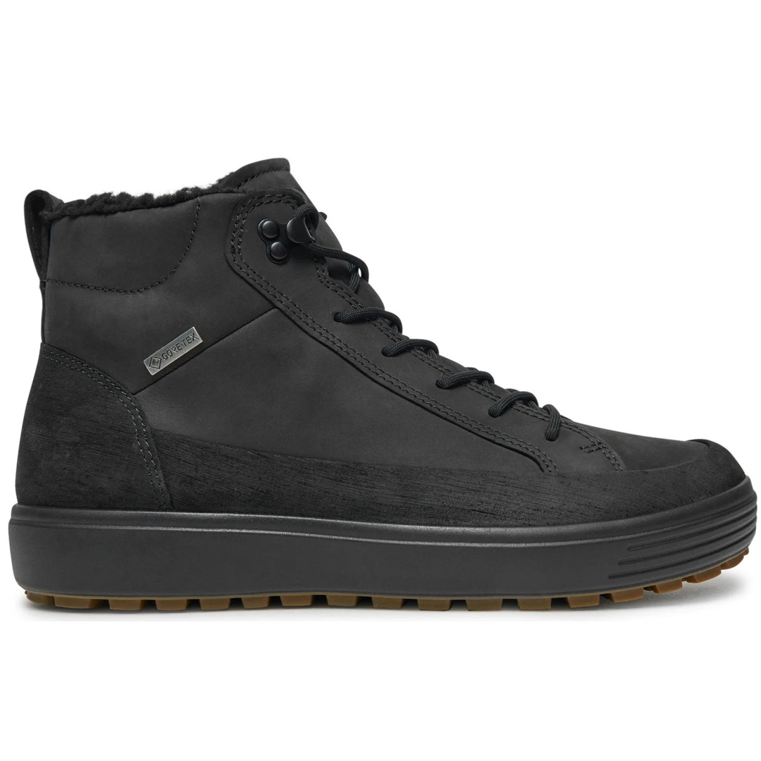Ta wersja modelu ECCO SOFT 7 TRED to wysokie buty wykorzystujące podeszwy zewnętrzne w stonowanym kolorze i zapewniającą stopom suchość technologię GORE-TEX; podążają za najnowszą modą, są komfortowe i idealne na chłodne miesiące. Ich konstrukcja wykorzystuje ciepłą wyściółkę oraz system sznurowania z haczykami i przelotkami — pozwalający na noszenie ich z wywiniętym językiem w ramach zadziorniejszej stylizacji — i zapewniają solidną dawkę praktyczności i miejskiego stylu.