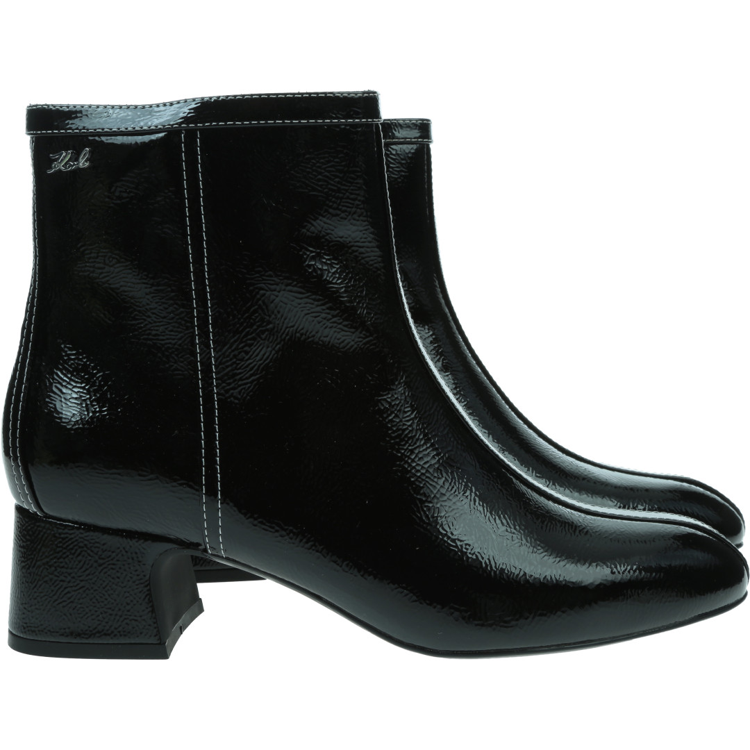 Modne stylowe botki Karl Lagerfeld to buty, które dopasujesz do każdej eleganckiej stylizacji. Wykonane z wysokiej jakości miękkiej skóry lakierowanej sprawią idealny klimat dla Twoich stóp. Obcas został wykonany z trwałego tworzywa, które prezentuje się bardzo oryginalnie, że chodzenie w tych butach to czysta przyjemność. Wkładka wykonana ze skóry naturalnej, perfekcyjnie wyprofilowana, odznacza się świetną oddychalnością.