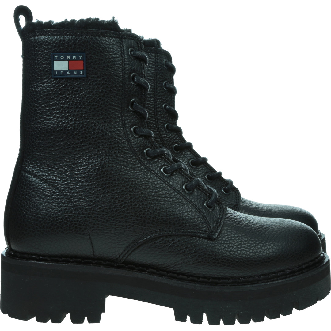 Stylowe czarne trapery TOMMY JEANS sprawdzą się idealnie w sezonie jesienno/zimowym. Przepięknie wykończone, dopracowane w każdym szczególe. Glany TOMMY JEANS mają grubą i wytrzymałą podeszwę, która zapewni doskonałą przyczepność i izolację od podłoża. Damskie bikery można założyć do uniwersalnych spodni rurek, jak również dobrze będą prezentować się w połączeniu z luźnymi boyfriendami o podwiniętych nogawkach. Botki TOMMY JEANS będą strzałem w dziesiątkę w nadchodzącym sezonie - można je wykorzystać do wielu stylizacji.