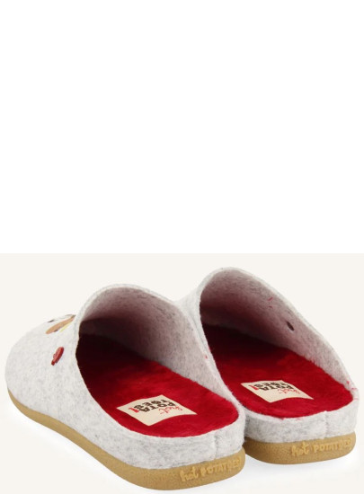 Kapcie hiszpańskiej firmy GIOSEPPO z najnowszej kolekcji HOT POTATOES to bardzo wygodne i ciepłe kapcie domowe. Wykonane z wysokiej jakości materiałów z recyklingu, w uniwersalnym kolorze. Posiadają bardzo miękką wkładkę, a cholewka została ozdobiona nawiązującą do znanego serialu pocieszną aplikacją w kształcie ziemniaczka. Filcowa cholewka zapewni idealny klimat dla zmęczonych stóp, miękka i dobrze wyprofilowana wkładka, antypoślizgowa, elastyczna podeszwa z naturalnego kauczuku, wygodne i ciepłe obuwie domowe, idealny pomysł na prezent dla kogoś bliskiego, wyprodukowane w Hiszpanii.