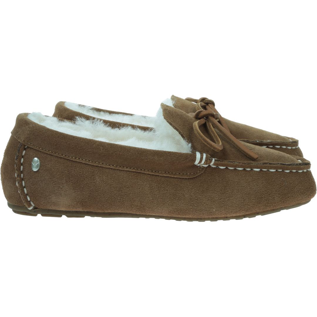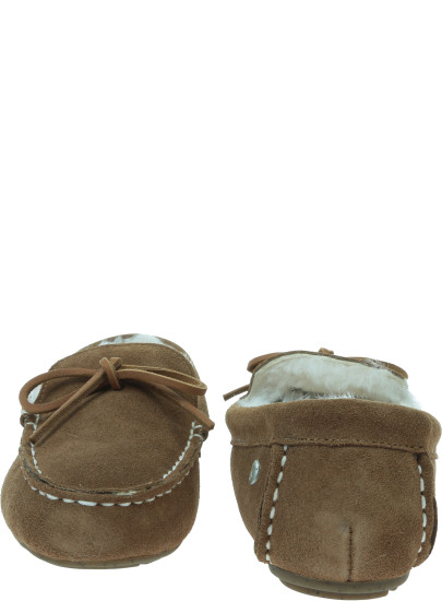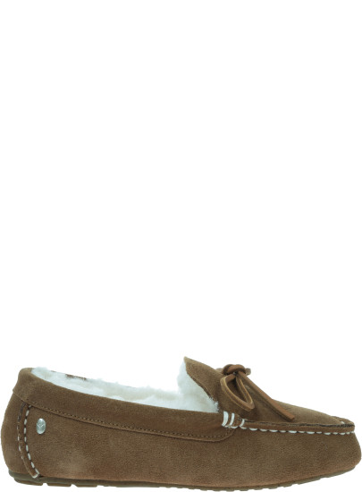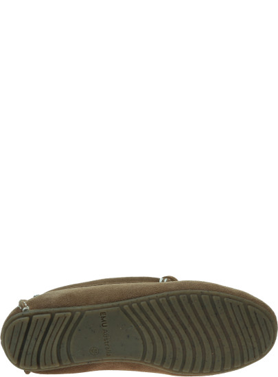 Kultowy model mokasynów Emu Australia, można je wykorzystać jako obuwie zewnętrzne jak i ciepłe kapcie domowe. Emu Sandrine to idealne kapcie dla domowych zmarzluchów. Wełna merynosa zapewnia odpowiednią temperaturę w bucie niezależnie od pogody. Miękkie, lekkie i wygodne przekonały do siebie tysiące klientek zachwyconych komfortem i wyglądem tych wyjątkowych butów. Wyściółka wykonana z naturalnej owczej wełny merynosa jest lekka, delikatna, przepuszcza powietrze, wełna merynosów pozyskana z krzyżówki owiec, które żyją jedynie w Australii posiada niezwykłe właściwości - chłodzi stopę gdy jest gorąco, ogrzewa gdy jest zimno. Wełniana wkładka zapewnia miękkość i wygodę, bardzo elastyczna podeszwa wykonana z wytrzymałego materiału z wytłoczonymi znaczkami firmowymi EMU, niezwykle miękkie wyłożenie poprawia komfort chodzenia, widoczne logo EMU na cholewce oraz na podeszwie.