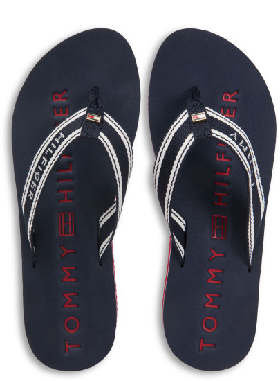 Kultowe japonki marki Tommy Hilfiger dodadzą Twojej stylizacji charakteru. Odpowiednio wyprofilowana wkładka podnosi komfort użytkowania. Materiałowe paseczki ozdobione subtelnym logo Tommy Hilfiger.