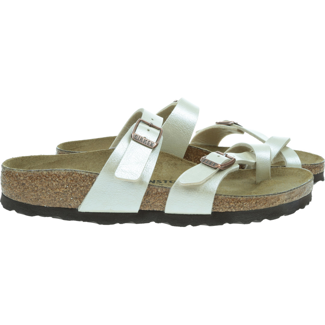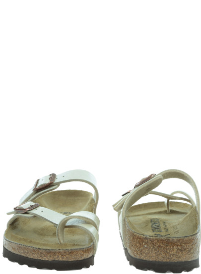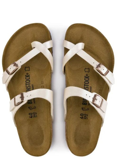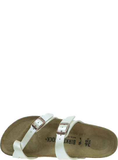Wygodne, perfekcyjnie wyprofilowane klapki fusbety BIRKENSTOCK Mayari . Wkładka została wykonana z wysokiej jakości skóry naturalnej. Klapki posiadają regulację szerokości paska. Pasek wykonany z wysokiej jakości tkaniny birkibuc, a także posiadają bardzo dobrze wyprofilowaną wkładkę, która poprawia komfort chodzenia. Wewnętrzna wkładka wykonana z juty poprawia stabilizację. Innowacyjna technologicznie wewnętrzna wkładka z lateksu, dopasowana do anatomicznego kształtu stopy. Profilaktyczne, oryginalne klapki BIRKENSTOCK zapewniają idealny komfort - odpowiednie wyprofilowanie wkładki pozytywnie wpływa na naszą postawę - sprawia, że nasz kręgosłup odpoczywa podczas chodzenia. Jedno-komponentowa podeszwa zewnętrzna z PU, bezpośrednio wtryskiwana zapewnia maksymalną elastyczność oraz doskonałą amortyzację wstrząsów.