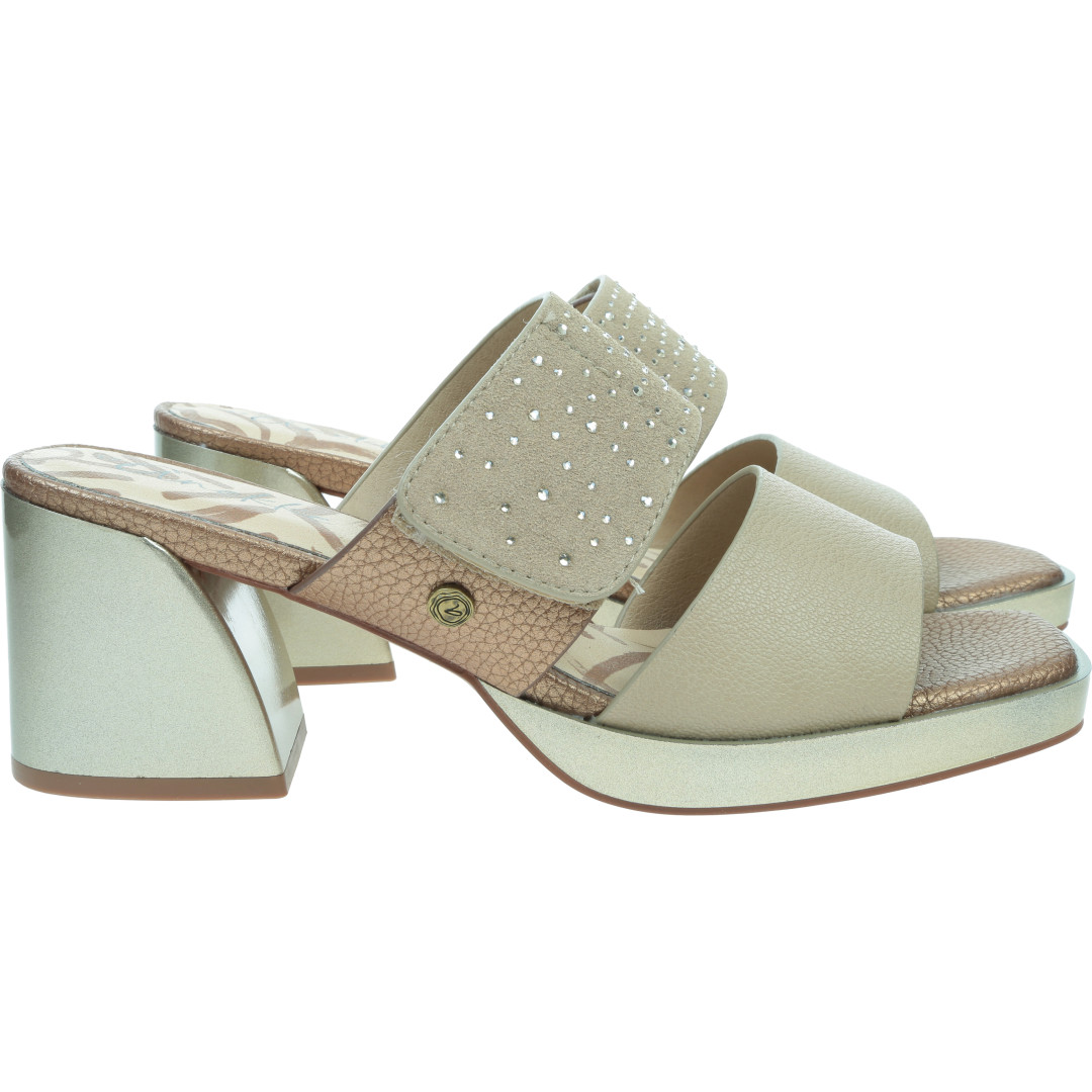 Stylowe klapki Anekke to propozycja dla kobiet, które cenią elegancję połączoną z komfortem. Model wyróżnia się subtelną kolorystyką w odcieniach beżu i złota, dzięki czemu świetnie pasuje zarówno do codziennych, jak i bardziej eleganckich letnich stylizacji.