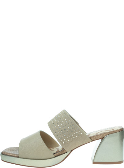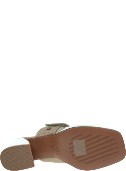 Metaliczne wykończenie podeszwy i obcasa podkreśla elegancki charakter modelu, a jednocześnie sprawia, że klapki prezentują się bardzo nowocześnie.