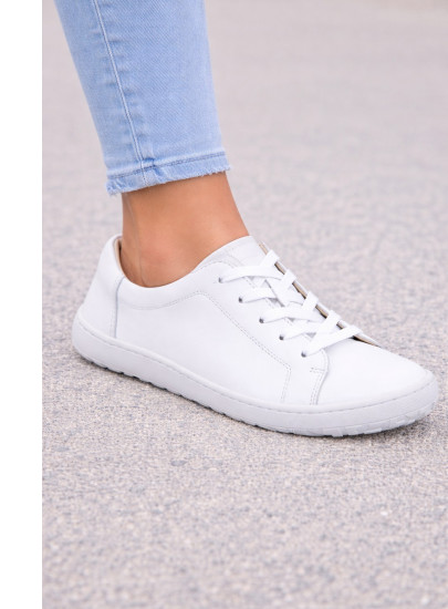 Charakterystyczną cechą modelu barefoot jest szeroki przód buta, który daje palcom więcej przestrzeni i wspiera naturalne ułożenie stopy. Płaska konstrukcja (zero drop) oraz bardzo elastyczna gumowa podeszwa umożliwiają naturalny ruch podczas chodzenia.