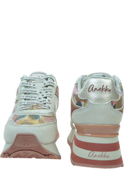 Te wyjątkowe sneakersy Anekke to prawdziwa modowa perełka dla kobiet, które kochają oryginalne detale i niepowtarzalny design. Model zachwyca pastelową kolorystyką oraz subtelnym, kwiatowym motywem, który nadaje całości romantycznego i artystycznego charakteru. Napis „timeless beauty” podkreśla filozofię marki – ponadczasowe piękno ukryte w detalach.