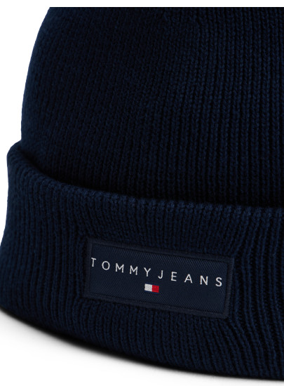 Czapka zimowa Tommy JEANS w klasycznym kolorze, logo marki umieszczone na przodzie, prosty fason pasujący do wielu stylizacji.